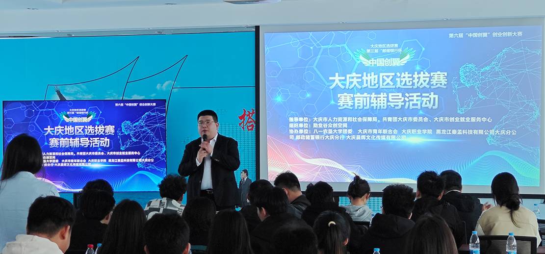 2024 年 4 月 21 日星期日,在大庆市创业就业服务中心,成功举办了第三届“邮储银行杯”中国创翼大赛赛前辅导活动,本次活动由大庆市人力资源和社会保障局、共青团大庆市委员会、大庆市创业就业服务中心发起,助业谷众创空间组织承办,邀请了黑龙江八一农垦 大学、大庆职业学院、大庆市青年联合会等高校师生及相关部门参加。此次活动吸引了众多参赛选手及高校师生的参加,会场上学生们和助业谷众创空间的创始人张海波先生积极互动,张海波先生贴心的为大家一一解答问题,场面其乐融融。